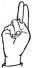 На ћирилици написано МИЛОМИРА ВЕЉОГЛАВАЦ састоји се из 18 слова [?]. Исписано ћириличном једноручном азбуком за глувонеме:
